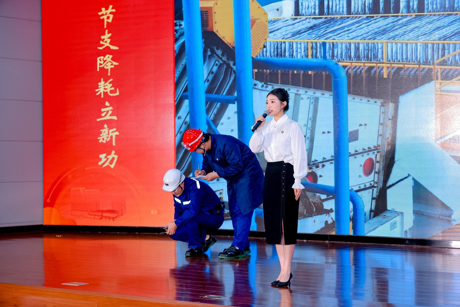 《向“新”谋变 向“智”图强》以公司降本增效的真实案例为素材,通过细腻而充满力量的语言和生动而极富感染的表演,讲述了新能人以创新创造去增收增效,以高新技术来减碳降耗的奋斗故事,再现了新能人披星戴月、越挫越勇、迎难而上的动人瞬间,充满感情的演绎深深打动了在场的评委和观众。真实展现了新型能源公司“敢闯敢创”的奋斗精神和“二次创业”奋斗决心。