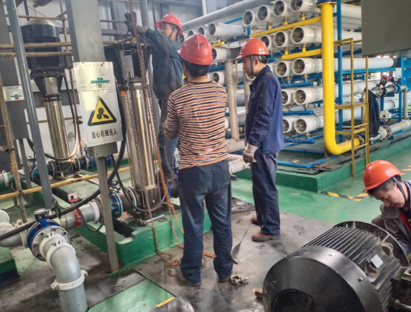 维修班在班长付龙龙的带领下,每个人都干劲十足,每当车间需要他们时,他们总是精神抖擞的迎接每一项任务,他们之间的配合十分默契,比如在检修水处理高压泵时,在满是噪音的环境下,他们靠着打手势来传递信息,虽然没有声音,但是每个人都懂得对方手势的意思,真可谓时此时无声胜有声。